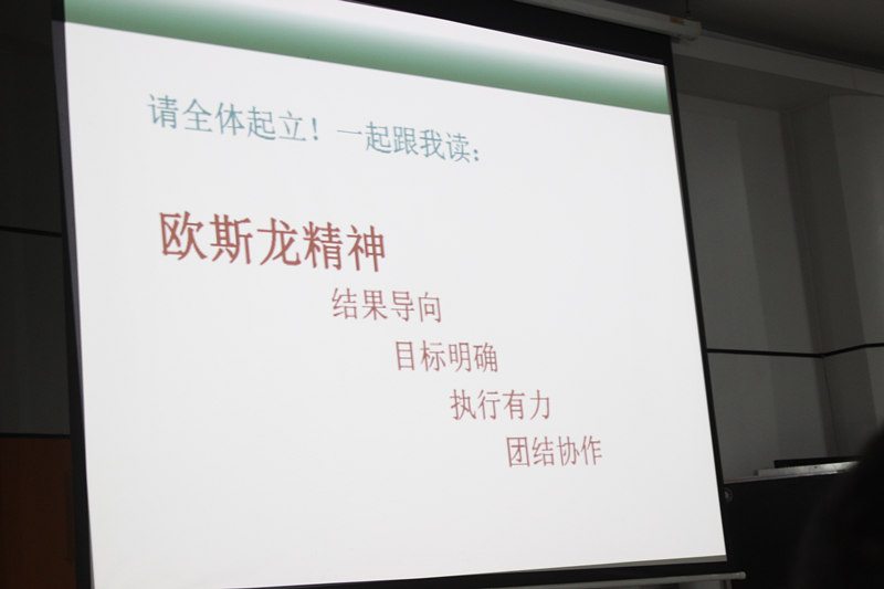 為激發(fā)全體人員對(duì)于目標(biāo)的認(rèn)真落實(shí)執(zhí)行,會(huì)上所有人于歐斯龍董事長(zhǎng)、總經(jīng)理和常務(wù)副總經(jīng)理張總的共同帶領(lǐng)下,全體人員肅然起立宣讀了歐斯龍精神:結(jié)果導(dǎo)向、目標(biāo)明確、執(zhí)行有力、團(tuán)結(jié)協(xié)作。