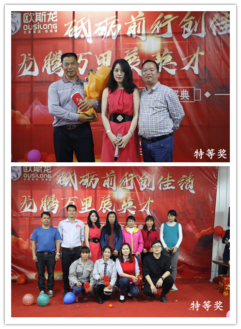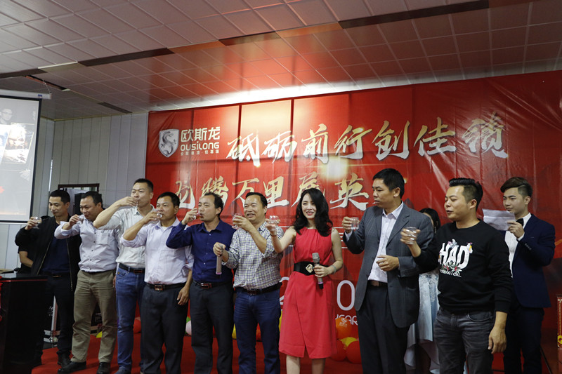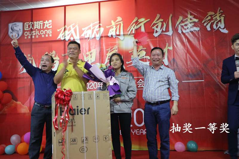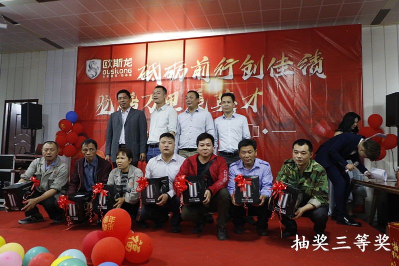 亮劍十幾載,榮譽(yù)滿天下。歐斯龍自成立以來始終以“改善人類居住環(huán)境”為己任,以人文為基礎(chǔ),以“設(shè)計(jì)人性化產(chǎn)品”為理念,創(chuàng)造出健康環(huán)保的人文空間,為數(shù)千萬用戶提供了吊頂?shù)恼w居家解決方案,深受廣大消費(fèi)者的認(rèn)可和青睞及行業(yè)好評(píng)?!?/p> 2020年1月4日廣州市歐斯龍建材科技有限公司“砥礪前行創(chuàng)佳績(jī),龍騰萬里展英才”年度盛典完滿舉行。公司領(lǐng)導(dǎo)與員工歡聚于廣州市南沙區(qū)歐斯龍工業(yè)園總部食堂,共同迎接2020年的到來。 公司總經(jīng)理陳明珍首先致新年祝詞,陳總經(jīng)理總結(jié)了過去一年歐斯龍公司所取得的成績(jī),對(duì)全體員工為公司發(fā)展所做出的努力表示肯定與感謝,對(duì)公司2020年的經(jīng)營(yíng)發(fā)展提出了目標(biāo),并向全體員工致以節(jié)日的問候和祝福。 隨后,在梁振杰董事長(zhǎng)的帶領(lǐng)下一眾領(lǐng)導(dǎo)班子上臺(tái)與全體歐斯龍成員高舉酒杯感恩過去、著眼現(xiàn)在、憧憬將來共同再接再厲、不斷進(jìn)取,再創(chuàng)輝煌。 在晚會(huì)開始之際,歐斯龍?zhí)貏e鳴謝到場(chǎng)參加宴會(huì)的一眾合作伙伴及領(lǐng)導(dǎo)。歐斯龍?jiān)诟魑坏拇罅χС窒卤貙⒗^往開來,更上一層樓。