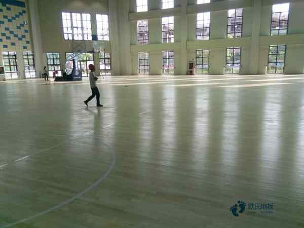 然后重新上漆、劃線。歐氏運動木地板工程師在這里,為朋友們科普,檢查:翻新前對運動木地板進行檢查。確定木地板的磨損程度,選用相應的打磨工具。打磨;根據運動木地板劃痕密集程度及深度選擇砂帶進行打磨,使表面光潔。打磨深度視地板磨損情況來定,一般范圍固定在0.5mm--2mm之間。補縫、修繕:將膩子粉和地板粉末調和成與地板顏色相同的膩子,對寬度不超過2mm的縫隙或其他小缺陷進行修繕。拋光:使用拋光機對運動木地板進行拋光,并使用吸塵器對地板進行清理。要求木地板表面無任何灰塵,墻邊、墻角等使用刷子和抹布進行清潔。上漆、劃線:清潔工作完畢后,對地板進行涂漆工作。運動木地板翻新需使用符合德國DIN18032標準的專用運動地板漆。