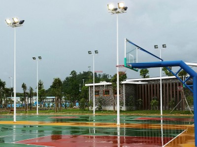 搭配燈具:上海亞明和飛利浦250w、400w、1000w高亮度球場燈專用金鹵泛光燈;燈具性能具體說明:燈殼為鋁材壓鑄成型,透光件為鋼化玻璃,燈具防護為IP65(全方位噴水而不進水),金鹵燈的光效及穿透力強、照射距離遠、配光均勻