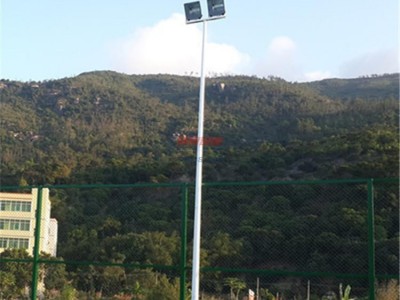 球場燈柱:用壁厚3.5mm。采用高強鋁合金型材和杜邦戶外粉末噴涂,永不生銹和不褪色外殼,高純度德國鋁反光罩,反射率高,亮度高,無眩光。配歐司朗鎮流器及金屬鹵化物光源,原廠質量保證,壽命長。適用網球場、籃球場等體育場地、大型廣場**照明。