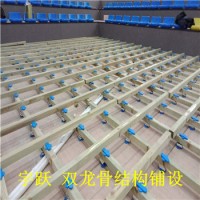 室內籃球館專用地板常用的幾種安裝結構有單龍骨結構,板式龍骨結構,雙龍骨結構,主副龍骨結構等,采取懸浮安裝,彈性好,主輔龍骨結構系統(tǒng)相互銜接保證了體育地板整個結構的穩(wěn)固性,再上標準的高架高度,使得其達到了一個標準的運動效果,一般適用于職工訓練場館、小學學校場館等非專業(yè)型競賽的體育場館。