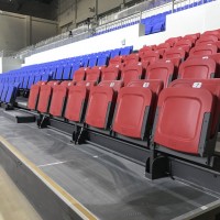 特殊設計的座椅能夠直接安裝在每一排踏板之上,伸縮時無需額外存儲座椅。在會議、校園賽事等活動模式時,移動看臺座椅整體伸出,通過場地設計,可以容納千人活動甚至更多。