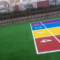 幼兒園人造草坪無毒無污染。幼兒園人造草坪資料選用聚乙烯和聚丙烯等無毒資料。而部分殘次幼兒園塑