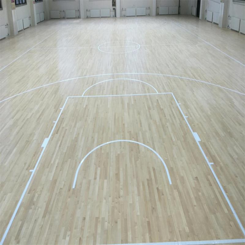 ?運動木地板均為實木制成,樹木都有本性,有陽光照射多的地方,也有背對陽光的地方,所以,實木地板會出現(xiàn)色差問題,其實這也正體現(xiàn)了實木地板的本性,大自然的美在籃球場實木地板上完美的展現(xiàn)了出來。木地板表面必須采用體育木地板專用漆,采用工廠預(yù)制淋漆、輥漆(俗 稱UV固化漆)地板,更利于達(dá)到DIN標(biāo)準(zhǔn)中對“摩擦系數(shù)”的要求。工廠預(yù) 先全自動密封烘烤涂漆,使面板色澤均勻、厚度一致、結(jié)膜飽滿、光潔、不漏 漆、不鼓泡、無孔眼,耐候性好,防滑性能顯著加強(qiáng),其耐磨耐燙灼等性能都 優(yōu)于其他涂飾工藝。淋漆工藝的使用有效避免了現(xiàn)場涂漆、打磨過程的環(huán)境(粉 塵、甲醛)污染、漆膜厚度不均、層間附著力差、易脫層、易起泡、易褪色變 黃的現(xiàn)象。
