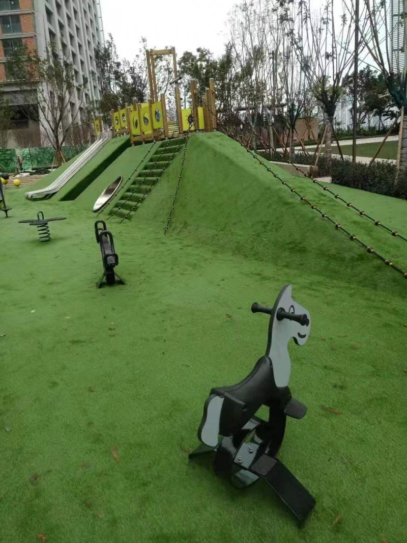 填充顆粒草坪是國內比較常見的人工草坪。它具有世界先進水平,有著良好的運動功用和實用性深受國內用戶的喜愛。 它的資料大多數是運用聚乙烯或許聚丙烯兩種資料的聚合物,這種草坪的纖維要比不充沙草坪的纖維長,外表下面要填2~3㎜的石英砂和橡膠顆粒。