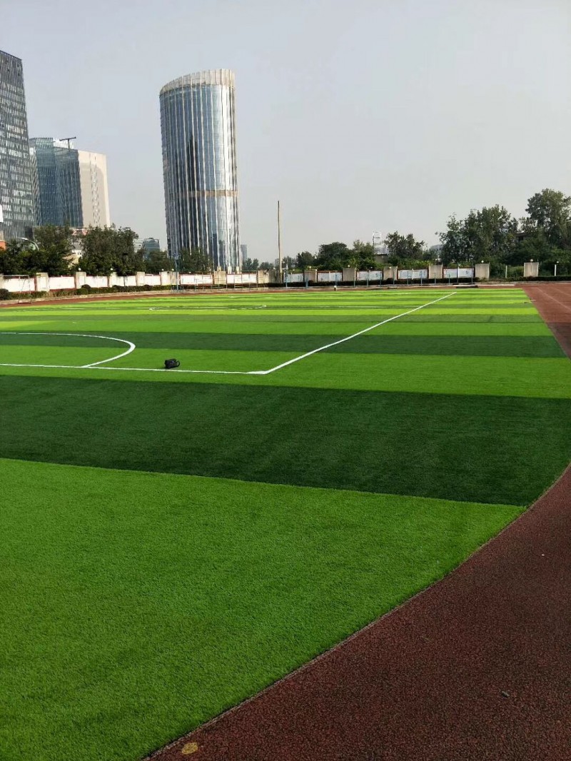 人工草坪的輔料填充深度這是取決于草坪的高度和場所需求的功能,一般足球場草坪高度都是40-60mm,也便是說底部到葉尖高度為40-60mm左右,依照FIFA規范的話,足球場50mm草高需求填充輔料的高度為3/4,也便是35mm,這樣符合場所對足球的彈性和外表的硬度。假如是中小學校的運動場所的話,可以恰當增加輔料,甚至可以跟草絲相等。所以并不是一切的場所的填充輔料的深度都一樣的,是依據不同的場所,和草絲高度來填充。