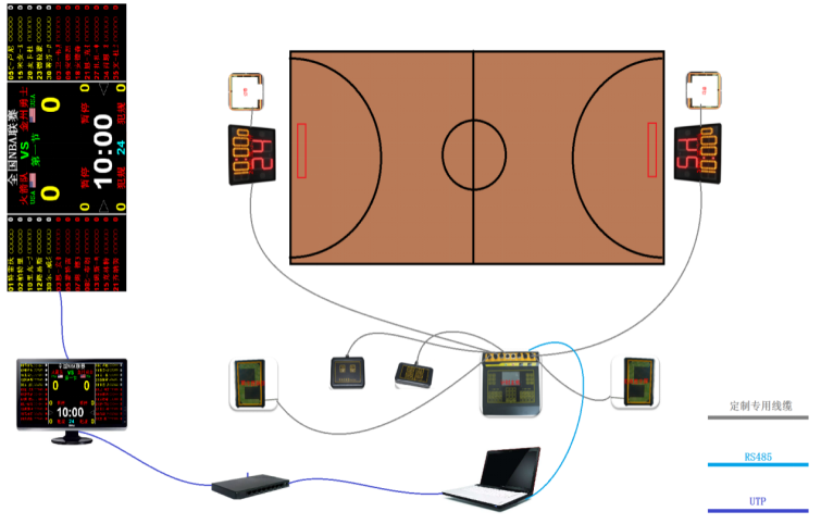 而計時計分系統是一個負責各類體育競賽技術支持系統前沿的數據采集和分配的專用系統,籃球計時計分屬于這樣的系統中的一類,它負責競賽過程的執裁信息、結果、成績信息采集處理、傳輸分配等一系列工作。且會隨著規則的修改而變動程序。