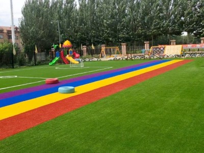人造草坪按生產工藝分為注塑人造草坪和編織人造草坪。注塑人造草坪采用注塑工藝,將塑料顆粒在模具中一次擠壓成型,并用打彎技術將草坪彎曲,使草葉等距、等量規(guī)律排布,草葉高度完全統(tǒng)一。適用于幼兒園、運動場、陽臺、綠化、沙金等方面。
